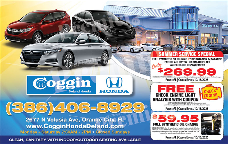 Coggin Honda DeLand offers exceptional automotive service, sales, and customer care for all Honda owners in Volusia County. Whether you need routine maintenance or a full-service repair, their certified technicians use genuine parts and the latest diagnostic tools.