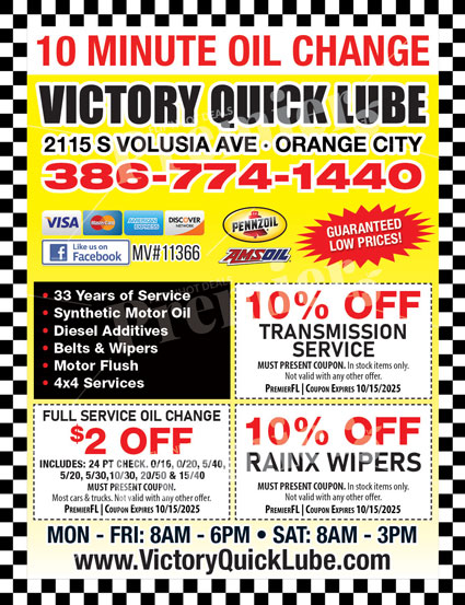 Enjoy great savings on oil changes, tire rotation, brake services, and more — all backed by the trusted Coggin name. Their clean, modern facility offers indoor and outdoor seating, complimentary amenities, and quick service appointments.