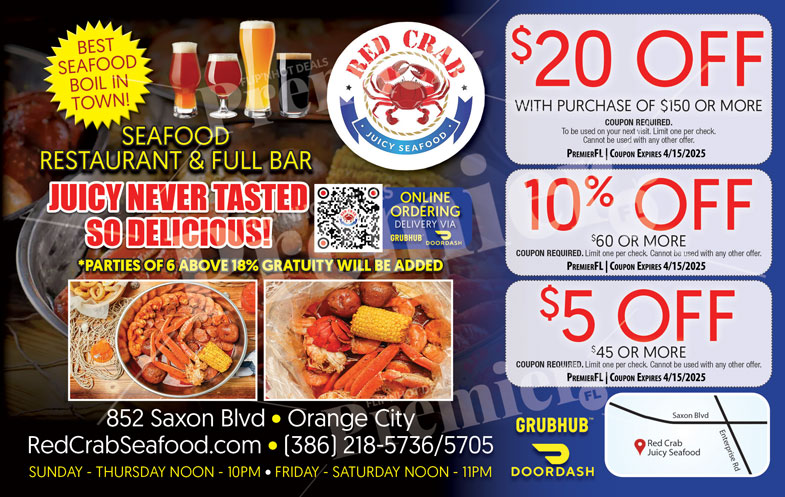 Home Food & DrinkDeBaryRed Crab Seafood Coupons