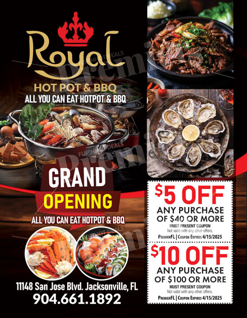 Royal Hot Pot & BBQ offers an interactive dining experience combining Korean barbecue with hot pot options. Patrons can grill meats or simmer ingredients in a choice of broths at their tables, selecting from a wide variety of proteins, vegetables, and seafood. The restaurant emphasizes fresh ingredients, bold flavors, and customizable combinations. With sauce stations, traditional side dishes, and communal ambiance, Royal Hot Pot & BBQ aims to deliver an immersive, flavorful meal that bridges Korean-style grilling and brothy hot pot traditions.